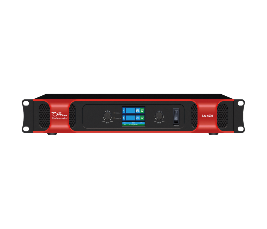 OHM LA4500 – Bộ tăng âm công suất (Power Amplifier) bốn kênh hiệu suất cao, được thiết kế với mạch công suất Class D tiên tiến. Với khả năng cung cấp mức công suất cực khủng lên đến 4500W mỗi kênh ở trở kháng 8Ω và hỗ trợ chế độ đánh cầu (Bridged) lên tới 20230W, LA4500 là giải pháp tối ưu cho các hệ thống loa sân khấu hội trường, sự kiện chuyên nghiệp quy mô lớn. Thiết bị sở hữu thiết kế hiện đại với màn hình hiển thị và nút bấm cảm ứng, mang lại khả năng vận hành chính xác và ổn định tuyệt vời.
