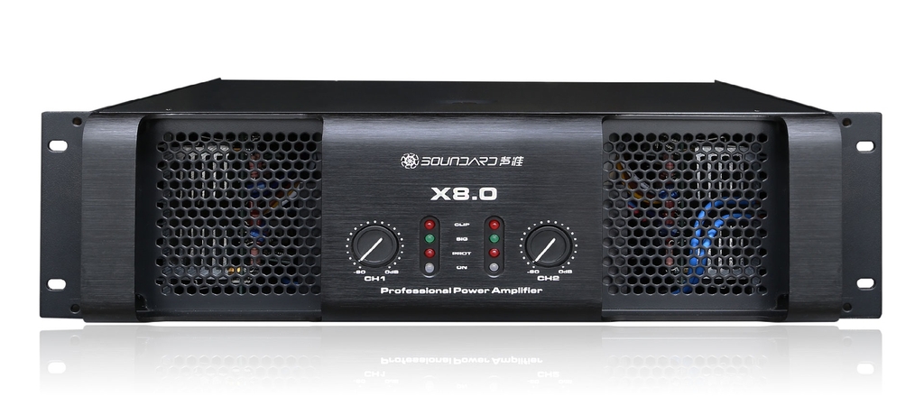 Soundard X8.0 là mẫu cục đẩy công suất (Power Amplifier) 2 kênh mạnh mẽ, được thiết kế để phục vụ các hệ thống âm thanh sân khấu và hội trường chuyên nghiệp. Với khả năng đánh ở trở kháng thấp tới 2Ω và công suất cực đại lên đến 3400W ở chế độ Bridge, X8.0 đảm bảo hiệu suất khuếch đại uy lực, ổn định cho cả loa full và loa siêu trầm công suất lớn.