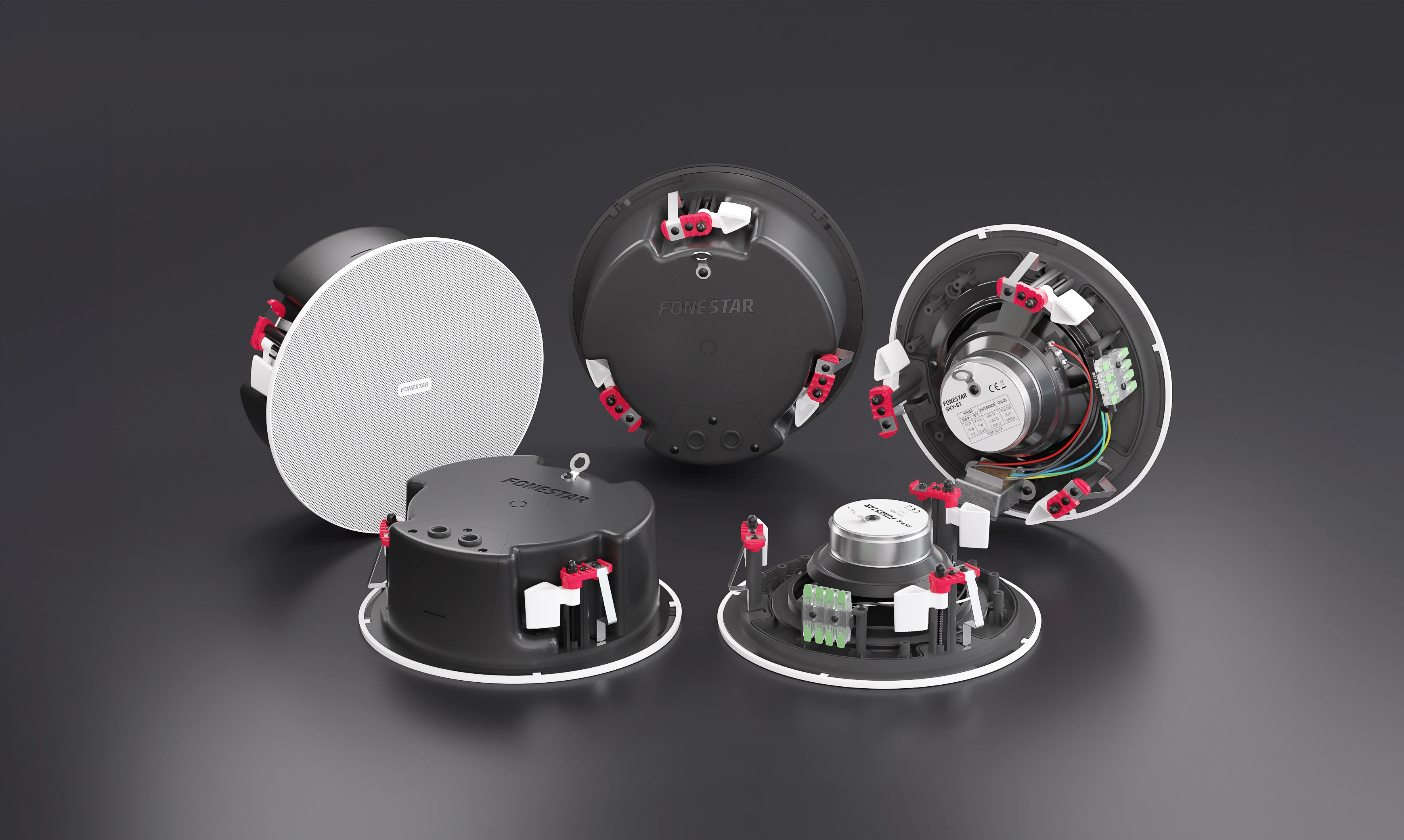 Fonestar SKY‑6T – Loa âm trần 6" có biến áp 100 V, lựa chọn công suất 5 / 10 / 15 W (có thêm 2.5 / 7.5 W), lưới nhôm không viền.
